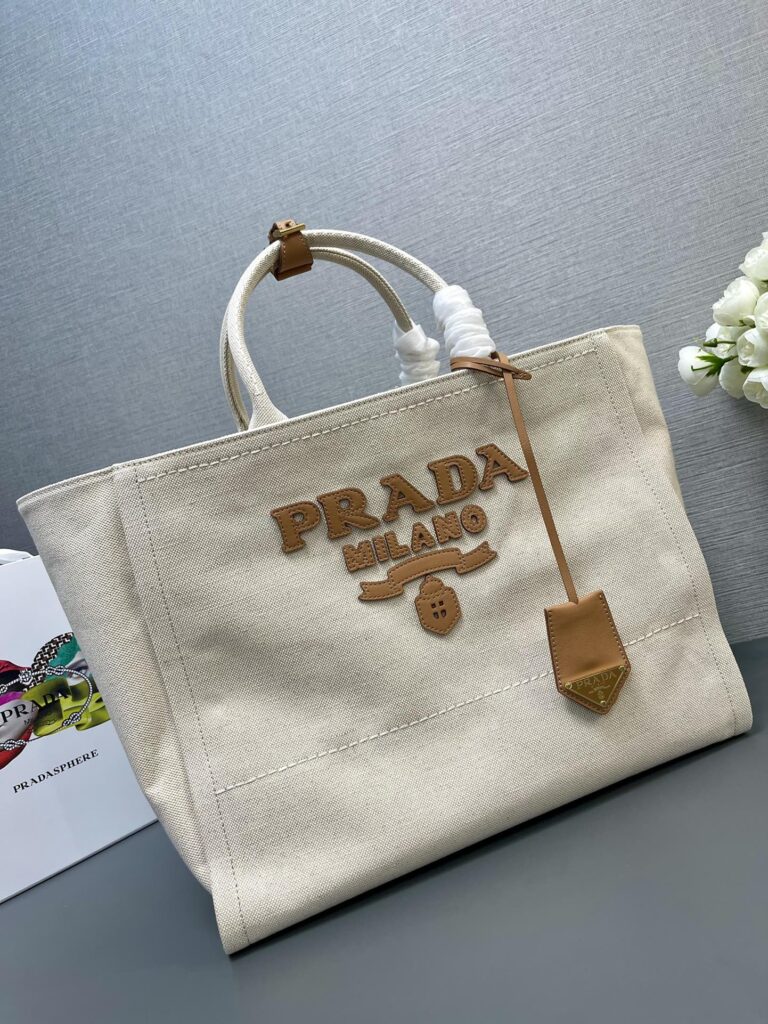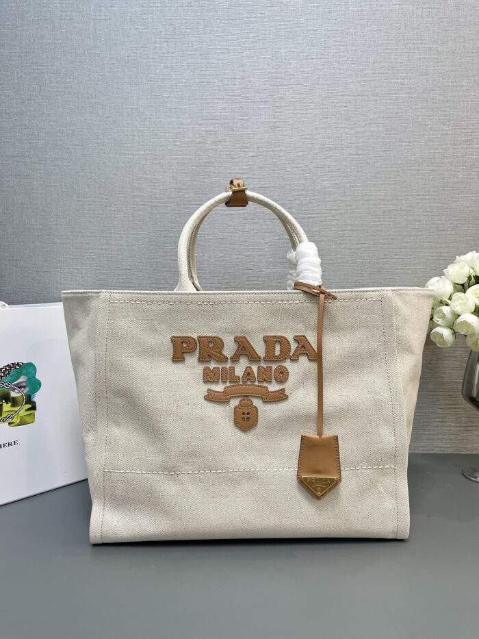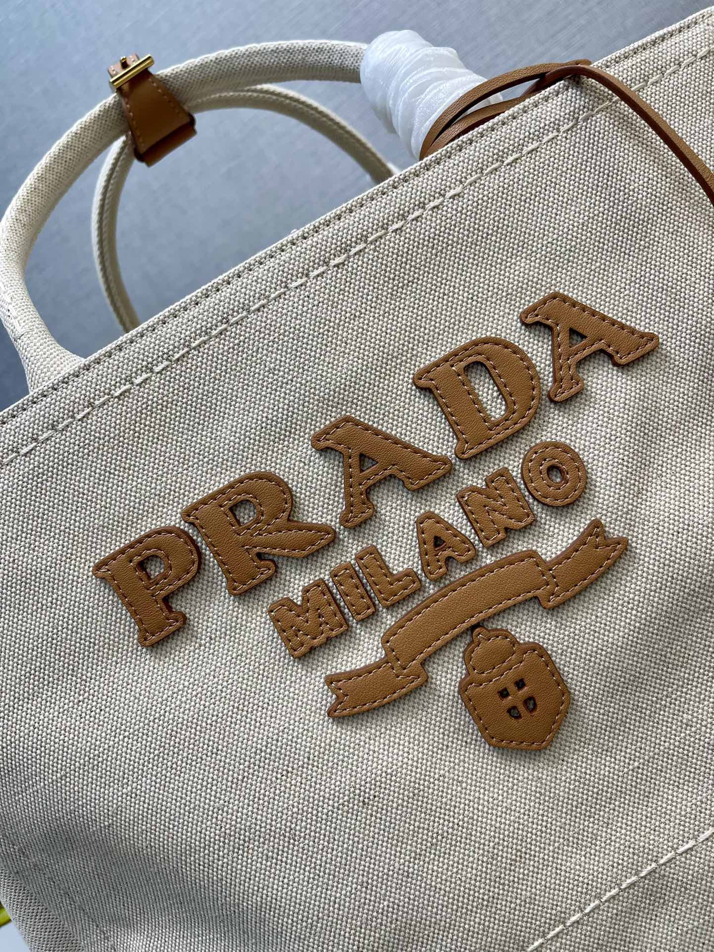 P 🌹 (large 39CM) the latest linen canvas bag 🎉1BG473 arrived 🎉 spring, summer, autumn and winter general purpose the latest canvas hand bag on the front of the iconic big logo pattern ➕ is equipped with a small tag, with color contrast cofskin and imported canvas design is particularly fashionable 😘😘 linen blend lining, Inside with zipper pocket 👍 not only large capacity can be loaded light and wear-resistant, hurry to start it, beautiful ladies 💪💪 size: 39X31X17CM